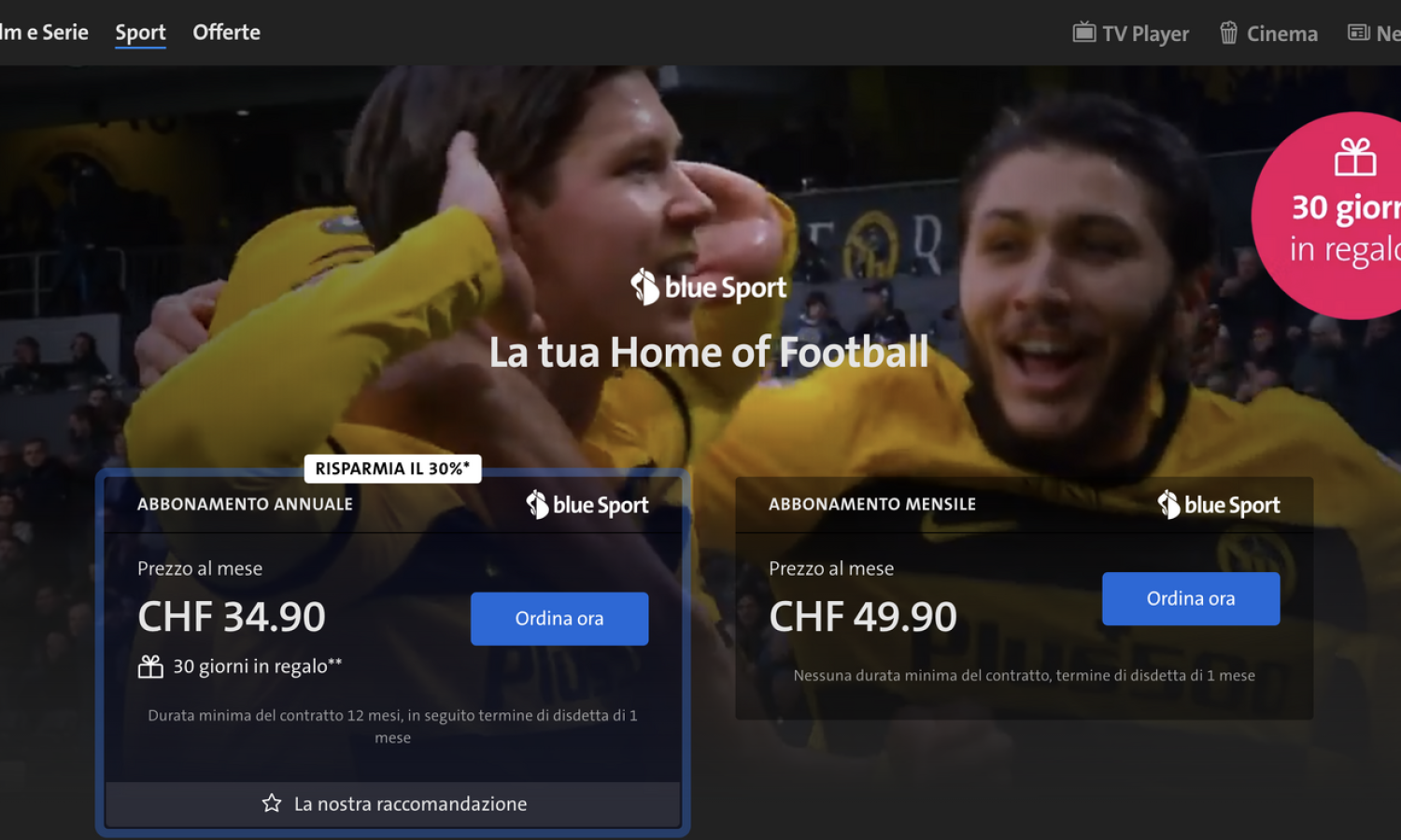 Blue Sport: Swisscom dovrebbe concedere la disdetta anticipata